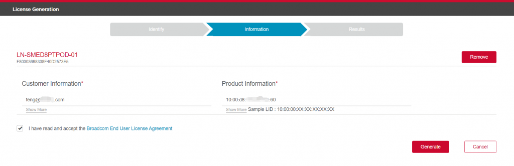 先找到购买的纸质授权书上附有的Transaction Key。登陆博通(Broadcom)官网,先注册一个账号,注意gmail、163、qq等主流公共邮箱无法用来注册,需要使用企业邮箱或者非主流的公共邮箱。注册完后,打开https://portal.broadcom.com/group/support/home,选择Licensing Portal,按照提示分别输入 Transaction Key 、交换机的License id,最后会得到一个授权码。