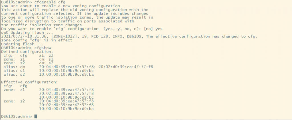 备注:配置文件(cfg)是 zone 的集合,在一个 fabric 中只有一个 配置文件处于激活状态。