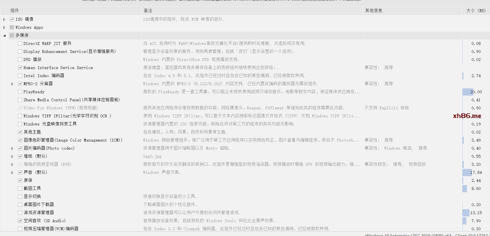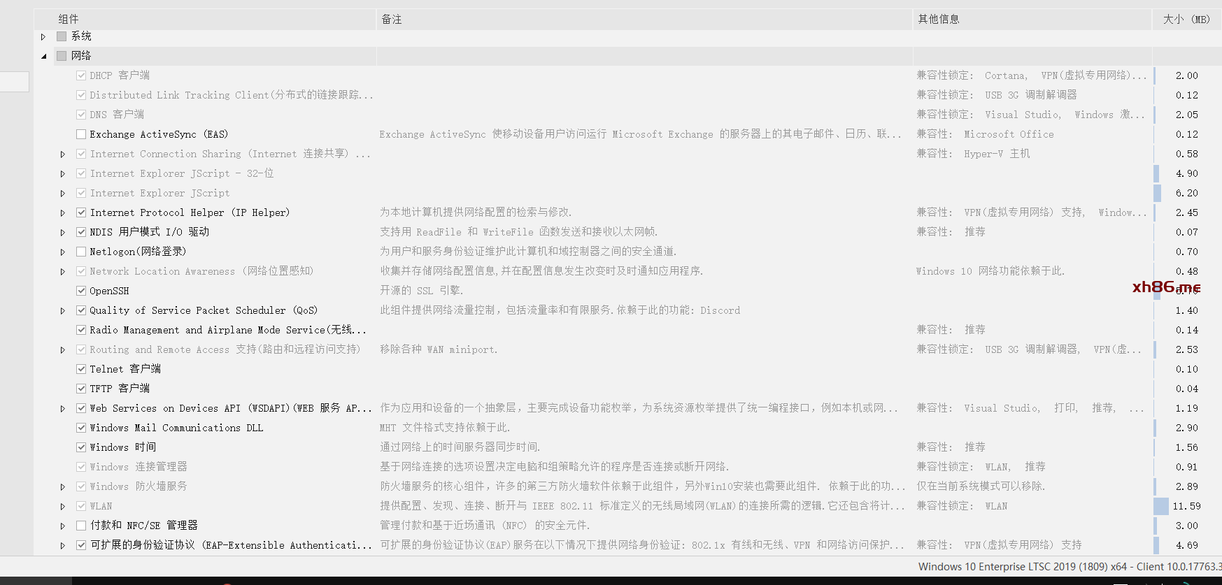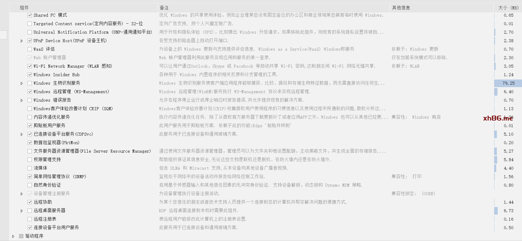 Windows 10 默认情况下会安装很多无用的功能,导致系统本身异常大,而其中大部分功能都是我们用不到的,比如小娜,反病毒软件等,这些功能非常影响性能,当然我们可以使用Windows 10 企业版,该版本默认精简了很多无用的功能,但是还是不够简单,很多东西还得自己去掉,如下是我的精简方案,经过了N次重装测试,正常使用没有问题,安装完后占内存800M左右。