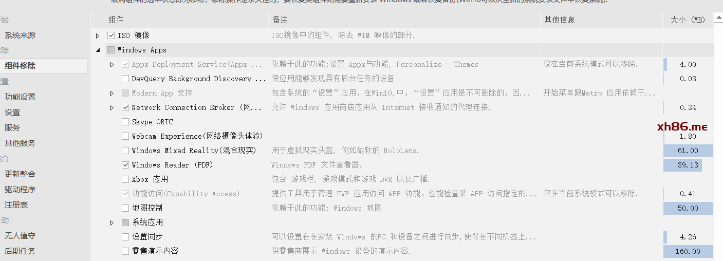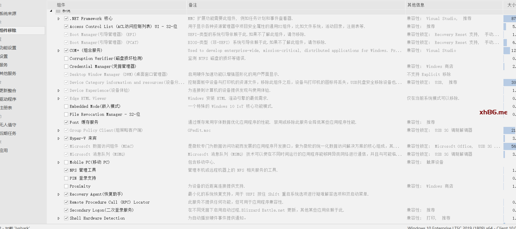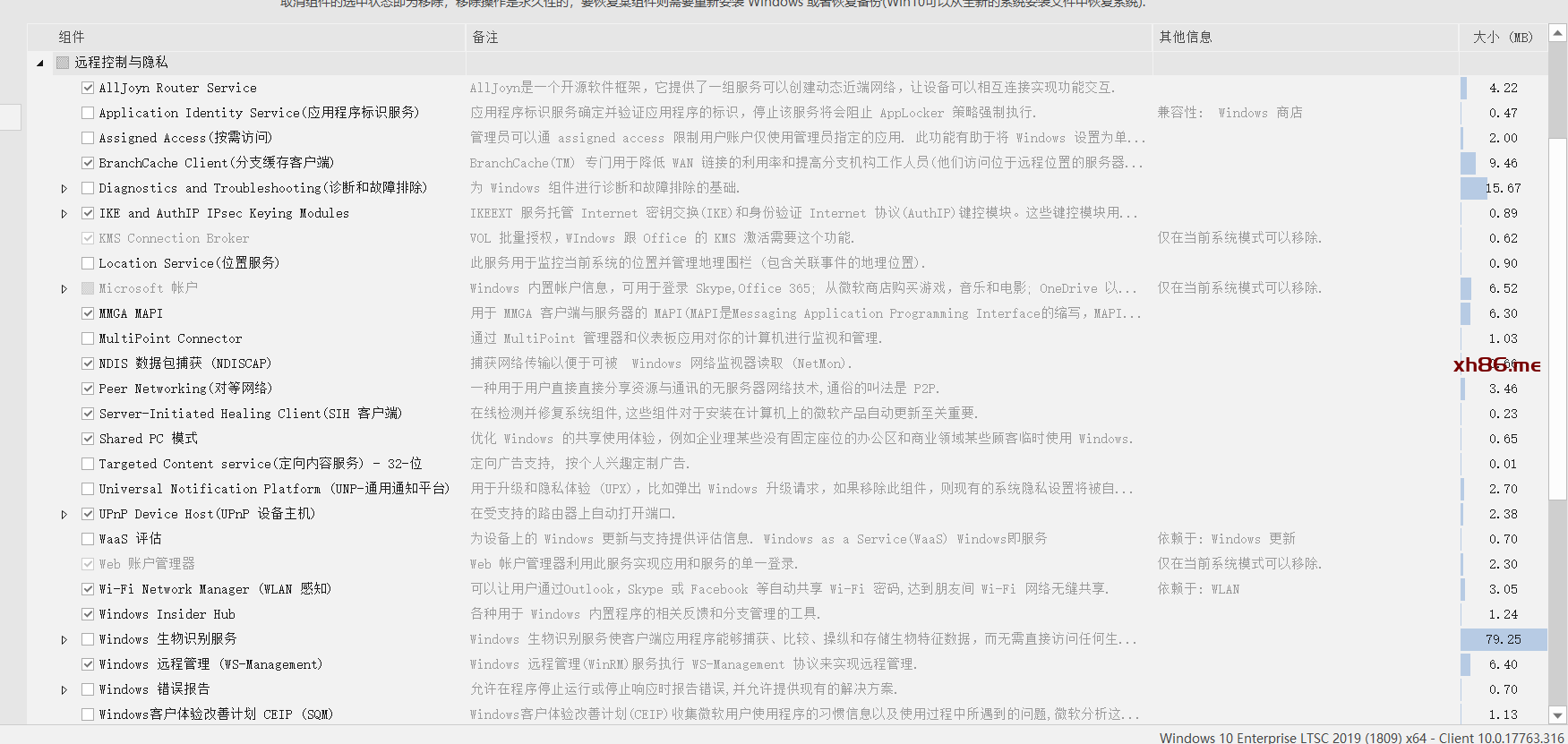 Windows 10 默认情况下会安装很多无用的功能,导致系统本身异常大,而其中大部分功能都是我们用不到的,比如小娜,反病毒软件等,这些功能非常影响性能,当然我们可以使用Windows 10 企业版,该版本默认精简了很多无用的功能,但是还是不够简单,很多东西还得自己去掉,如下是我的精简方案,经过了N次重装测试,正常使用没有问题,安装完后占内存800M左右。