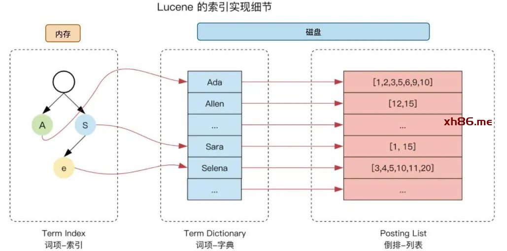 为了能够在数量巨大的 terms 中快速定位到某一个 term,同时节约对内存的使用和减少磁盘 io 的读取,lucene 使用“term index -> term dictionary -> postings list”的倒排索引结构,通过 FST 压缩放入内存,进一步提高搜索效率。