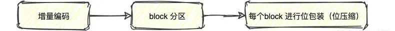 会把所有的文档分成很多个 block,每个 block 正好包含 256 个文档,然后单独对每个文档进行增量编码,计算出存储这个 block 里面所有文档最多需要多少位来保存每个 id,并且把这个位数作为头信息(header)放在每个 block 的前面。