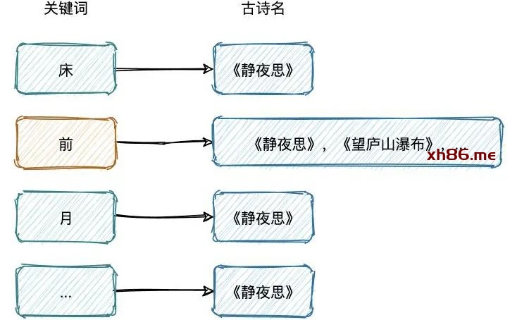 这样我们一输入“前”,借助倒排索引就可以直接定位到符合查询条件的古诗。