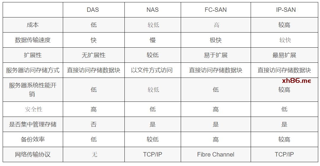 四、FC-SAN,IP-SAN,NAS,DAS区别: