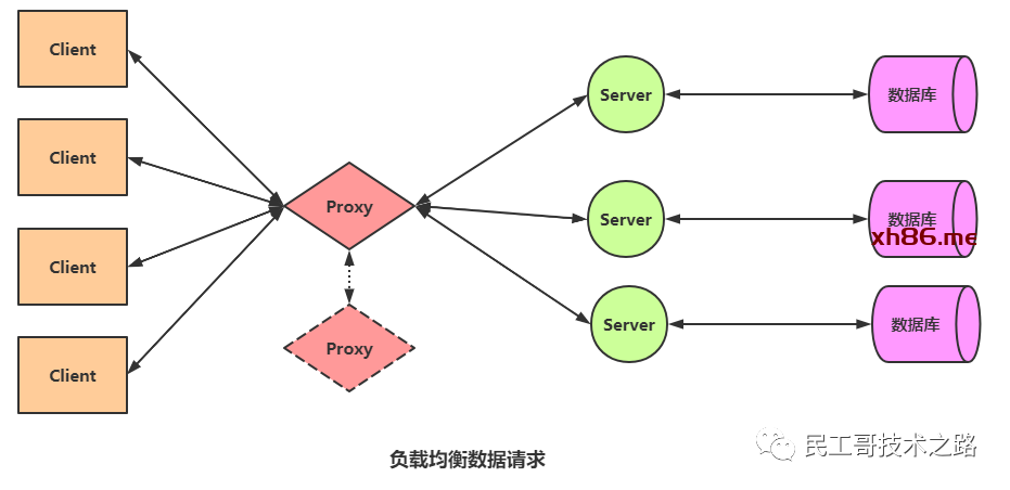 这儿主要讲讲负载均衡,也就是图上的Proxy,可以是LVS,也可以是Nginx。假设有 15 个请求发送到代理服务器,那么由代理服务器根据服务器数量(请求具体分配策略,可以参考LVS负载均衡理论以及算法概要后面的负载均衡调度算法),这儿假如是平均分配,那么每个服务器处理 5 个请求,这个过程就叫做负载均衡。
