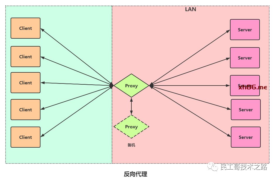 此时反向代理服务器和目标服务器对外就是一个服务器,暴露的是代理服务器地址,隐藏了真实服务器 IP 地址。