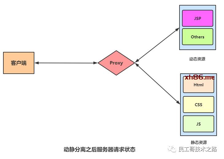 为了加快网站的解析速度,可以把动态页面和静态页面交给不同的服务器来解析,加快解析的速度,降低由单个服务器的压力。