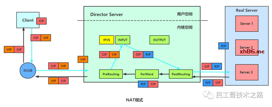 今天总结一下负载均衡中LVS与Nginx的区别,好几篇博文一开始就说LVS是单向的,Nginx是双向的,我个人认为这是不准确的,LVS三种模式中,虽然DR模式以及TUN模式只有请求的报文经过Director,但是NAT模式,Real Server回复的报文也会经过Director Server地址重写: