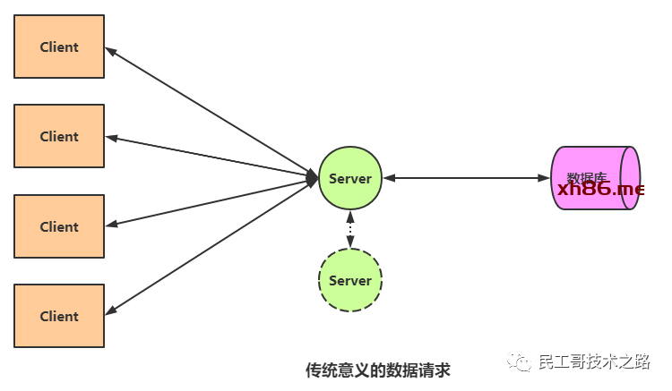 但是随着信息数量增长,访问量和数据量增长,单台的Server以及Database就成了系统的瓶颈,这种架构无法满足日益增长的需求,这时候要么提升单机的性能,要么增加服务器的数量。