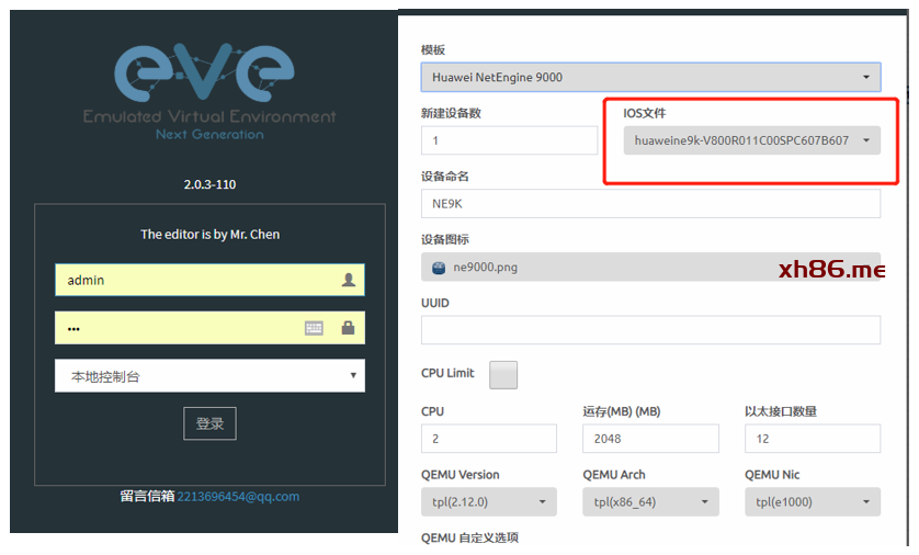 在这里我用的EVE-NG版本是2.0.3-110,使用的华为镜像是HuaWei NetEngine 9000-huaweine9k-V800R011C00SPC607B607。这个镜像做实验的效果还可以,就是启动的速度简直不要太慢,从设备启动到可以做实验,至少8分钟。