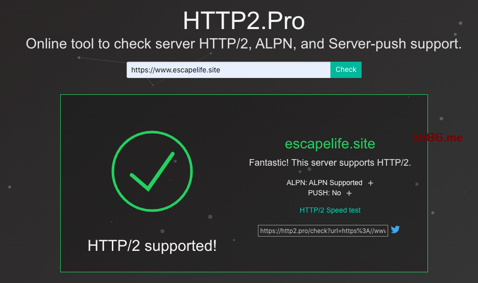 下面这网站可以验证自己管理的网站是否支持 HTTP/2 的协议。