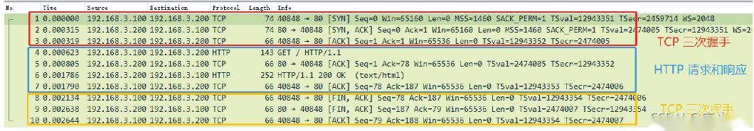 Wireshark 可以用时序图的方式显示数据包交互的过程,从菜单栏中,点击 统计 (Statistics) -> 流量图(Flow Graph),然后,在弹出的界面中的「流量2类型」选择 「TCP Flows」,你可以更清晰的看到,整个过程中 TCP 流的执行过程: