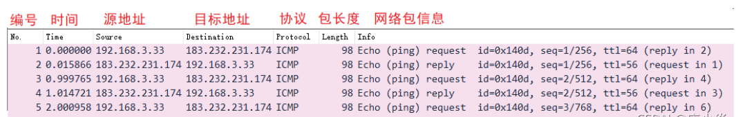接着把 ping.pcap 文件拖到电脑,再用 Wireshark 打开它。打开后,你就可以看到下面这个界面: