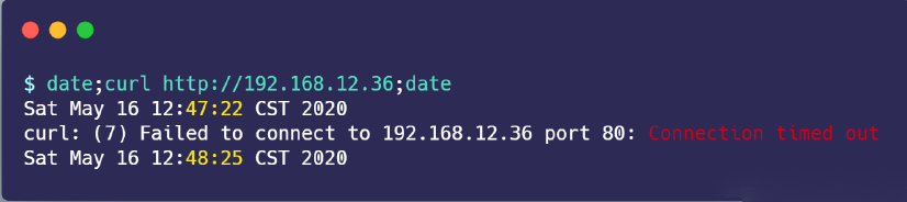从图中可以发现:客户端发起 SYN 后,由于防火墙屏蔽了服务端的所有数据包,所以 curl 是无法收到服务端的SYN、ACK 包,当发生超时后,就会重传 SYN 包。