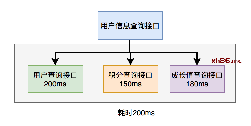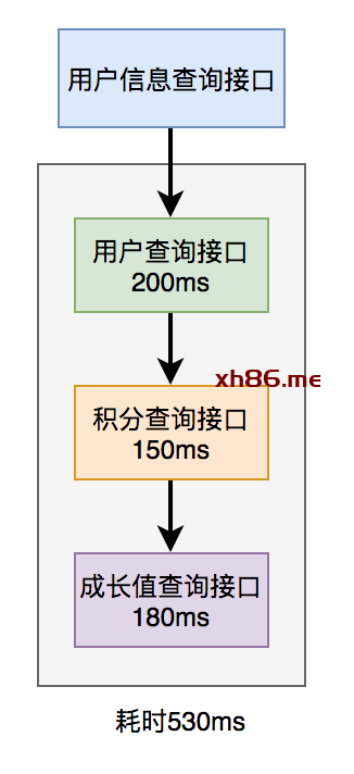 显然这种串行调用远程接口性能是非常不好的,调用远程接口总的耗时为所有的远程接口耗时之和。