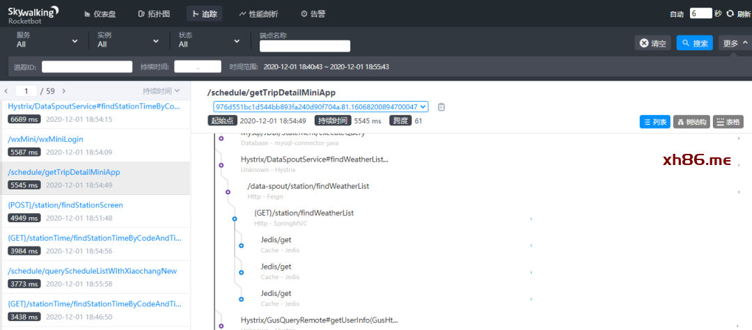 traceId(全局唯一的id),串联一个接口请求的完整链路。可以看到整个接口的耗时,调用的远程服务的耗时,访问数据库或者redis的耗时等等,功能非常强大。