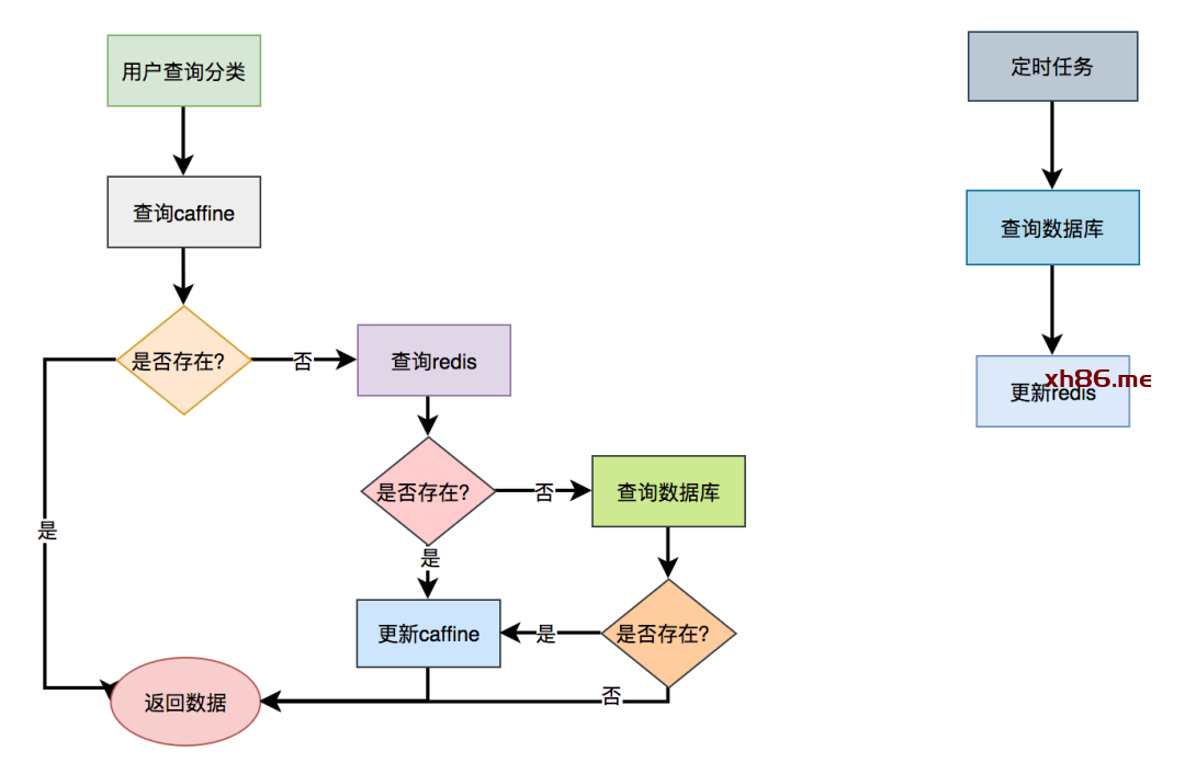 如果不能获取到数据,则再从redis中查一次数据。如果查询到了,则返回数据,并且放入caffine中。