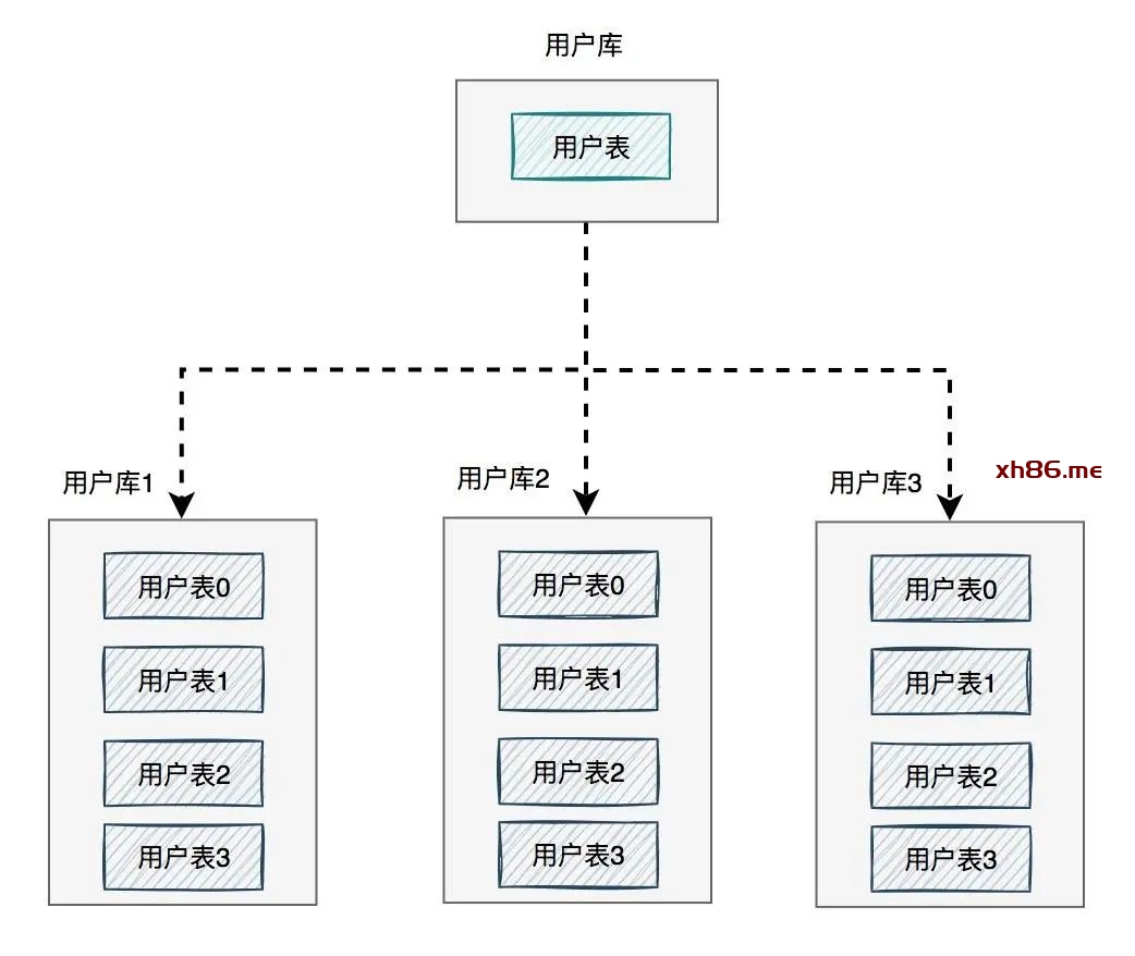 如果有用户请求过来的时候,先根据用户id路由到其中一个用户库,然后再定位到某张表。