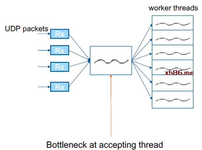 UDP 状态在应用层,因此内核只能在 packet 层做分发, 负责监听 UDP 新连接的单个线性不但要处理新连接,还负责包的分发,显然会存在瓶颈和扩展性问题。