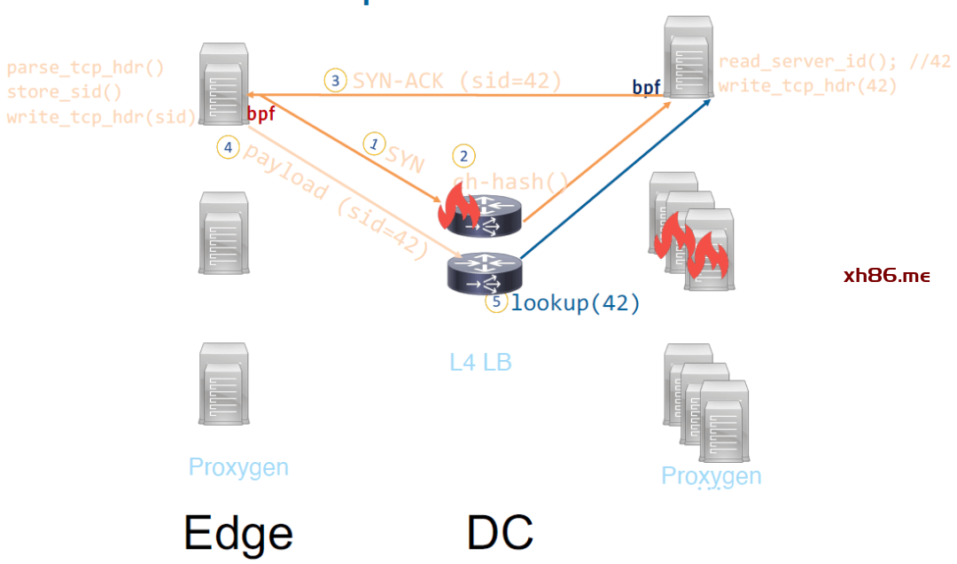 这样整条链路上都可以从包中提取这个 id,无需任何哈希或 cache 查找,最终实现的是一个 完全无状态的四层路由(completely stateless routing in L4)。
