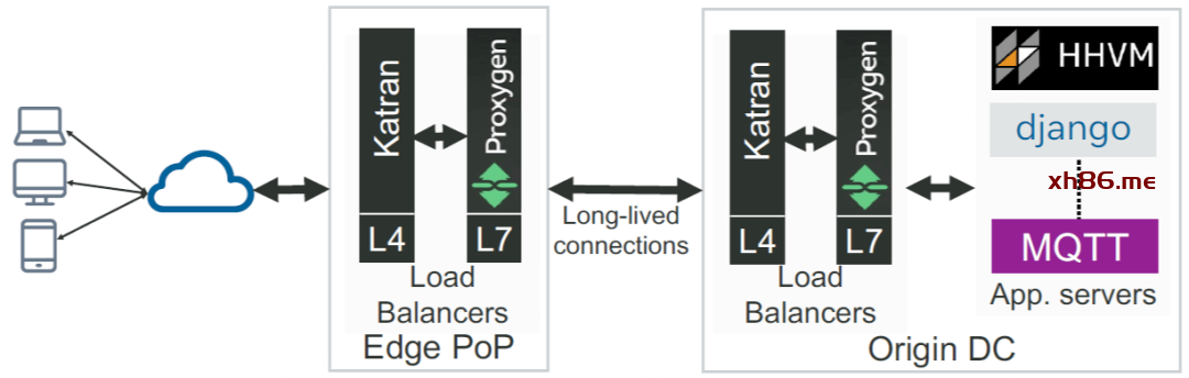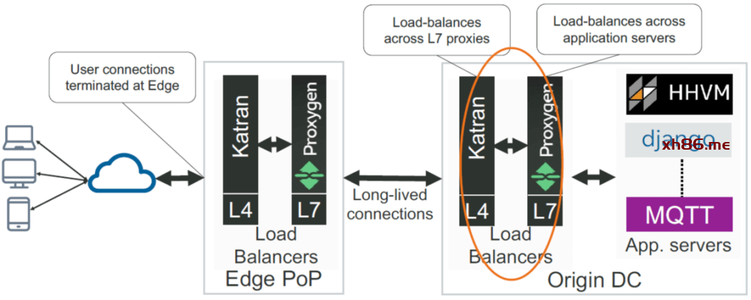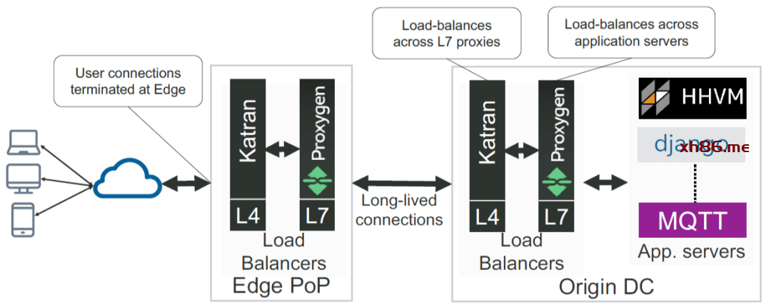 Origin DC LB 再将 L7 流量路由到最终的应用,例如 HHVM 服务。