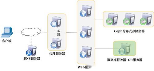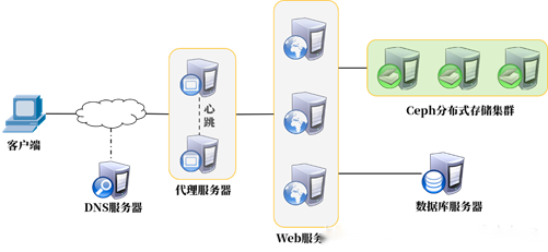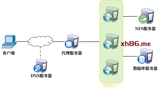 随着服务器的增加,虽然性能与并发量得到了明显的提升,但是数据的一致性、管理的便利性成为了新的问题,因此就需要增加统一的存储服务器,实现数据的同步一致,可以使用NFS,GlusterFS、Ceph等软件实现该功能,其架构如图-6所示。