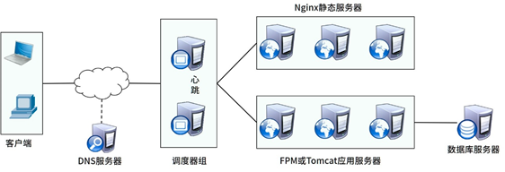 但是如果只有一台调度器依然会导致单点故障的问题,因此还需要使用Keepalived或Heartbeat之类的软件进行高可用配置,如图-4所示。