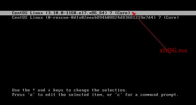 1、重启服务器,在选择内核界面使用上下箭头移动