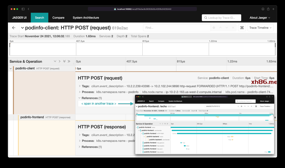 Hubble 适配器添加到支持 OpenTelemetry 的集群中,可对网络事件和应用级别遥测提供有价值的可观测性。当前版本通过 OpenTelemetry SDK 提供了 HTTP 流量和 spans 的关联。
