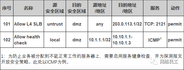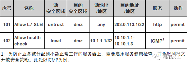 表1-1 安全策略示例-四层负载均衡