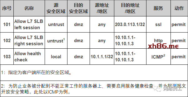 表1-2 安全策略示例-七层负载均衡