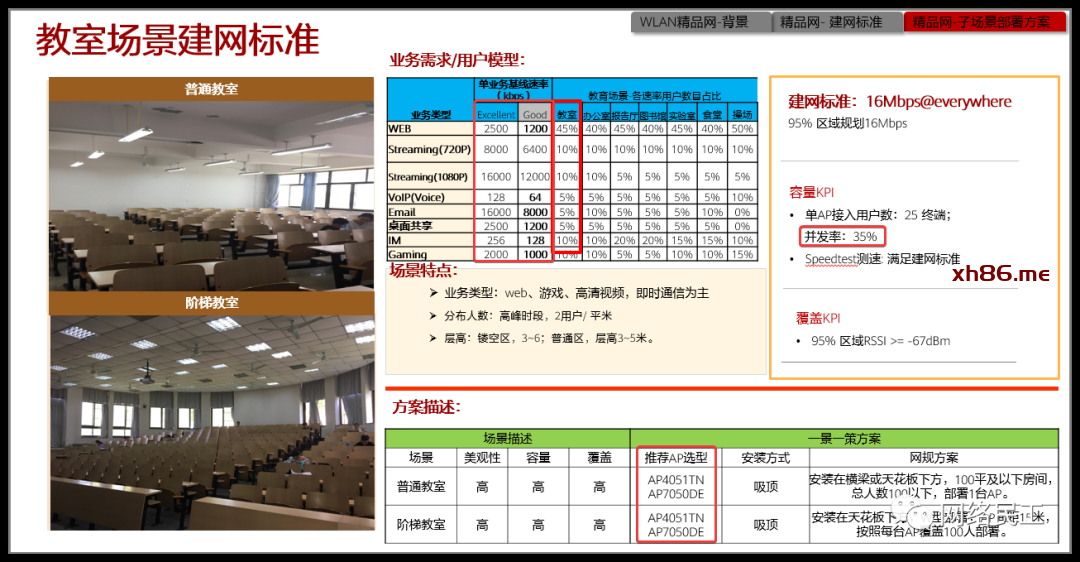 网络容量设计是根据无线终端的带宽要求、终端数目、并发率、单AP性能等数据来设计部署网络所需的AP数量,确保无线网络性能可以满足所有终端的上网业务需求。