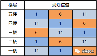 如果在多层楼层中部署无线网络,垂直方向上也要规划互不干扰的信道。如图3所示。