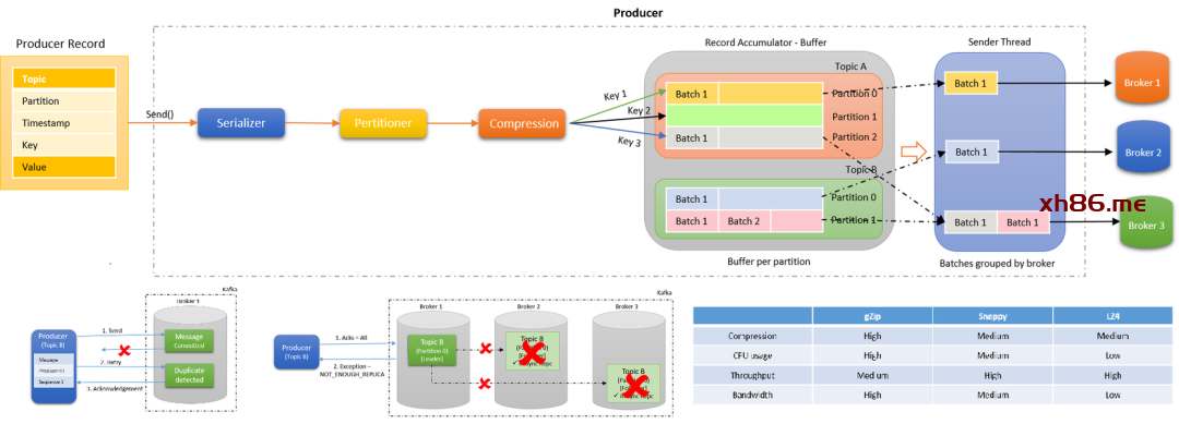 Compress:默认情况下,在 Kafka 生产者中不启用压缩.Compression 不仅可以更快地从生产者传输到代理,还可以在复制过程中进行更快的传输。压缩有助于提高吞吐量,降低延迟并提高磁盘利用率。  -