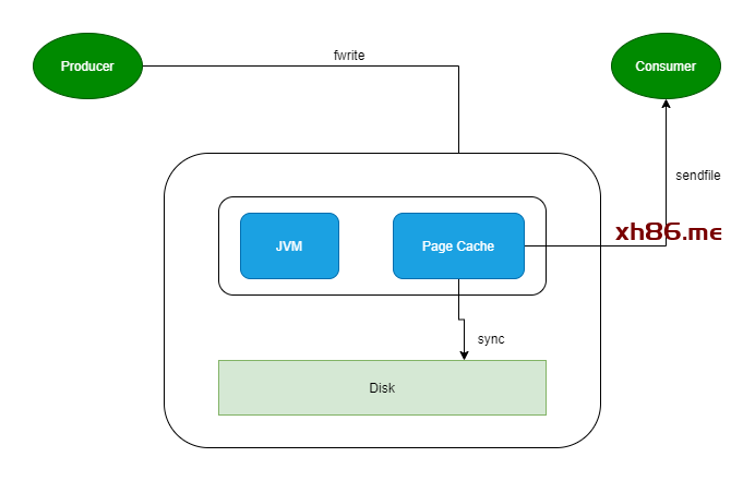 producer 生产消息到 Broker 时,Broker 会使用 pwrite() 系统调用【对应到 Java NIO 的 FileChannel.write() API】按偏移量写入数据,此时数据都会先写入page cache。consumer 消费消息时,Broker 使用 sendfile() 系统调用【对应 FileChannel.transferTo() API】,零拷贝地将数据从 page cache 传输到 broker 的 Socket buffer,再通过网络传输。