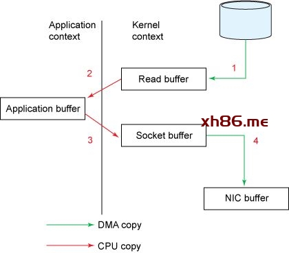 如图,如果采用传统的 IO 流程,先读取网络 IO,再写入磁盘 IO,实际需要将数据 Copy 四次。