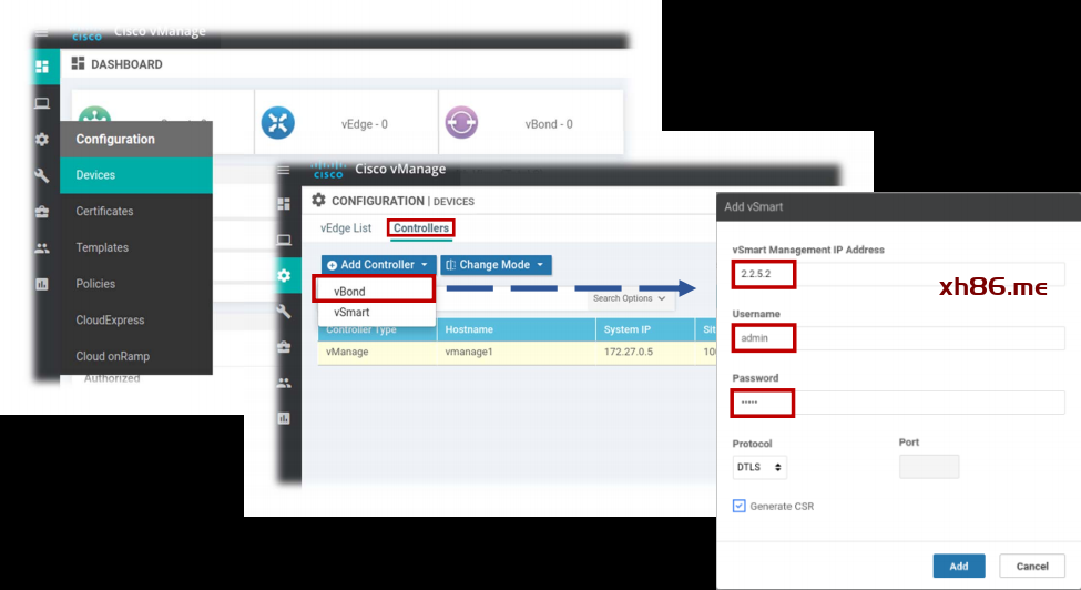 整个SD-WAN 架构采用Zero-Trust 模型,此时并未在vManage上看到vSmart/vBond被识别