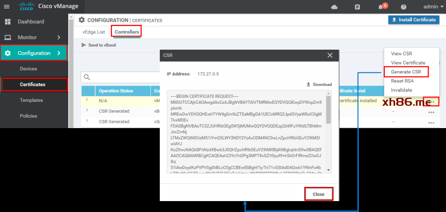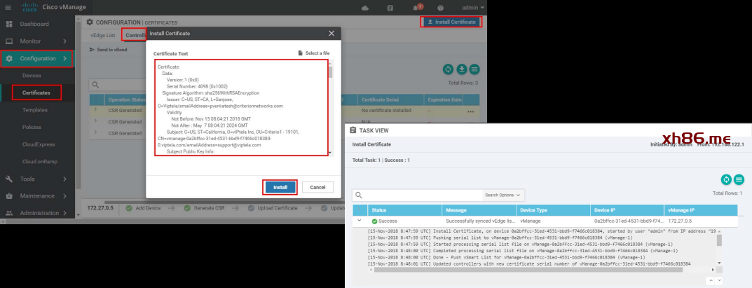 2.在vManage上依次安装vManage,vbond,vsmart签名证书(以vmanage为例操作如下)