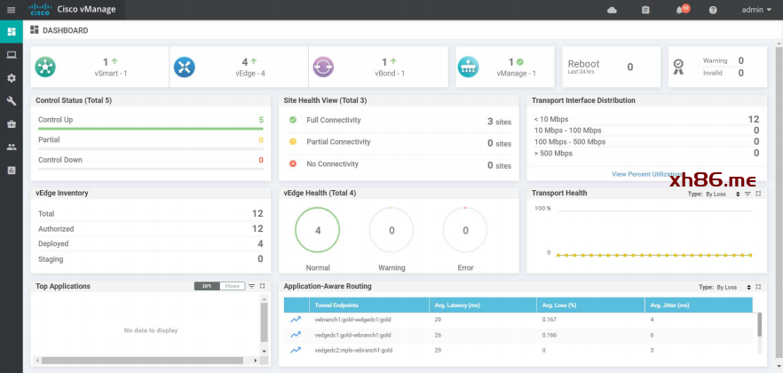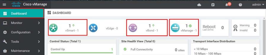 7.登陆vManage查看Dashboard的Control Status是否正常