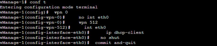 省略VPN 512下管理接口配置,本测试环境中统一使用eth0,并通过DHCP获得管理地址