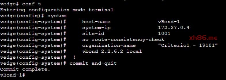 Note :此处vbond命令后需要指定为Local,含义是为这台vEdge指定为vBond角色