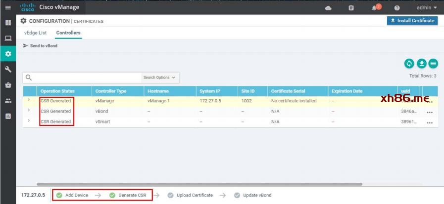 4.确认当前vManage,vBond,vSmart的CSR文件已经准备就绪