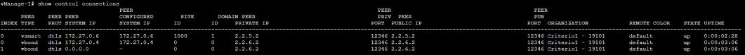 6.分别通过如下命令查看当前vedge 控制连接状态