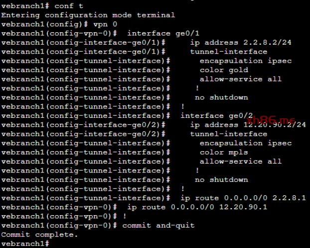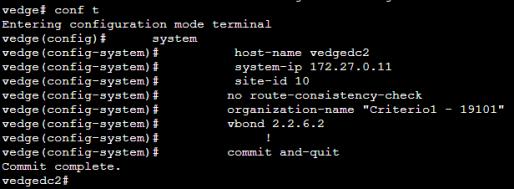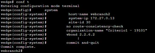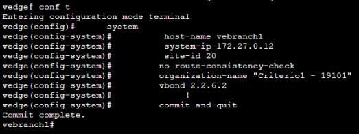 2.通过CLI登陆vebranch1敲入如下命令对vEdge进行注册