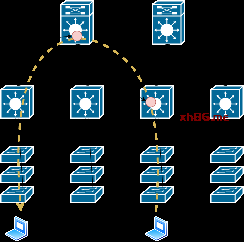 大规模的网络中,需要接入交换机、汇聚交换机、核心交换机这种分层组网结构。