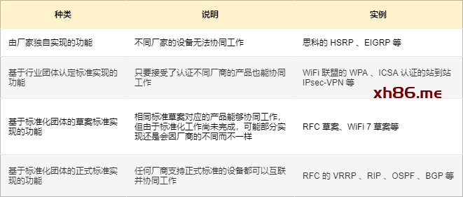 互操作性表示网络中不同类型的网络设备互相连接后,也能正常通信的情况。由于网络设备通常实现了相同的 RFC 或 IEEE 等标准或协议,因此不同厂商设备之间,可以说具有互联性。但另一方面,厂家独自实现了一些未标准化的功能,这类功能是无法在所有设备上运行的。