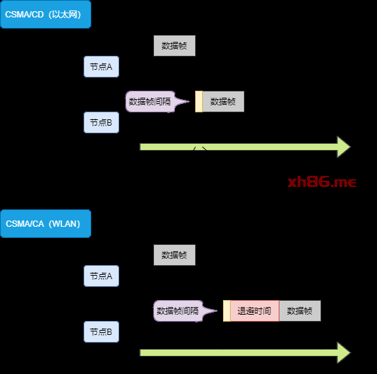 由于有线网络能够通过电气噪音及时检测冲突的发生,而无线网络无法迅速有效的检测冲突,只能采用 CSMA/CA 的机制来避免冲突的发生。