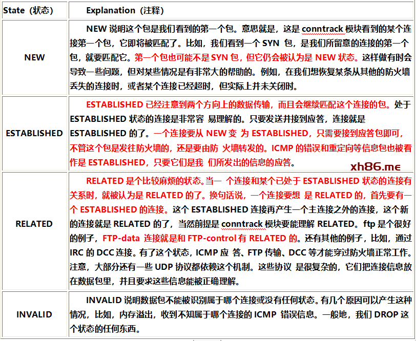 状态:NEW、RELATED、ESTABLISHED、INVALID