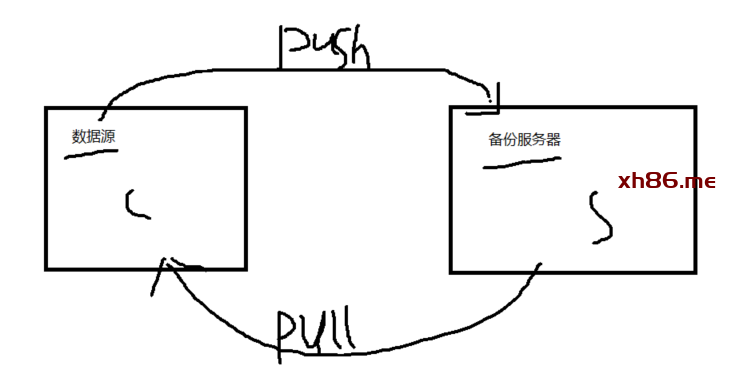 拉:源主机配置为rsync服务器,目的主机周期性的使用rsync命令把要同步的目录拉过来(需要备份的机器是服务端,存储备份的机器是客户端)。