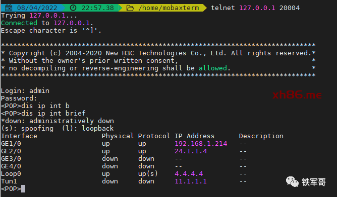 同理,再创建端口转发表项http67,将192.168.1.67的10001端口映射到127.0.0.1的端口20002。创建端口转发表项rdp188,将192.168.1.188的3389端口映射到127.0.0.1的端口20003。创建端口转发表项telnet214,将192.168.1.214的23端口映射到127.0.0.1的端口20004。